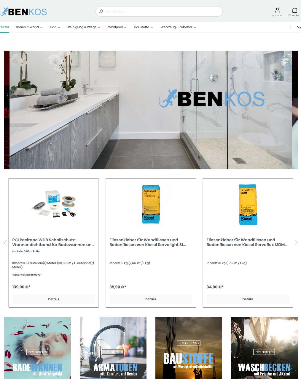 Seit 2001 steht unser Name Benkos für Kompetenz, Schnelligkeit und Top-Konditionen. Lassen Sie sich überzeugen von unseren Erfahrungen in den Fachbereichen für Sanitär mit unseren Waschbecken, Armaturen, WC, Duschen, Badewannen, Wannen, Duscharmaturen, Duschköpfe, Aufsatzwaschbecken, Sauna, Fliesenkleber, Fugen, bad Zubehör und vieles mehr. Hersteller Unser Online Shop ist für Sie 24 Stunden da. Stöbern Sie in Ruhe und bestellen --Sie alles was Sie für Ihr Bad und Ihre Sauna brauchen. Das alles ganz bequem von Ihrem Schreibtisch oder von Ihrem mobilen Gerät aus. Neben humanen Lieferkosten sorgen wir für kurze Transportwege und sichern Anlieferung der wertvollen Fracht. Wir zeigen Transparenz gegenüber unseren Kunden und schaffen so gegenseitiges Vertrauen. Unser Telefonservice steht Ihnen gerne zur Beratung bei und beantwortet Ihre Fragen Rund um Ihre Bestellung. Unser fachlich geschultes Personal findet eine Lösung für Sie.
